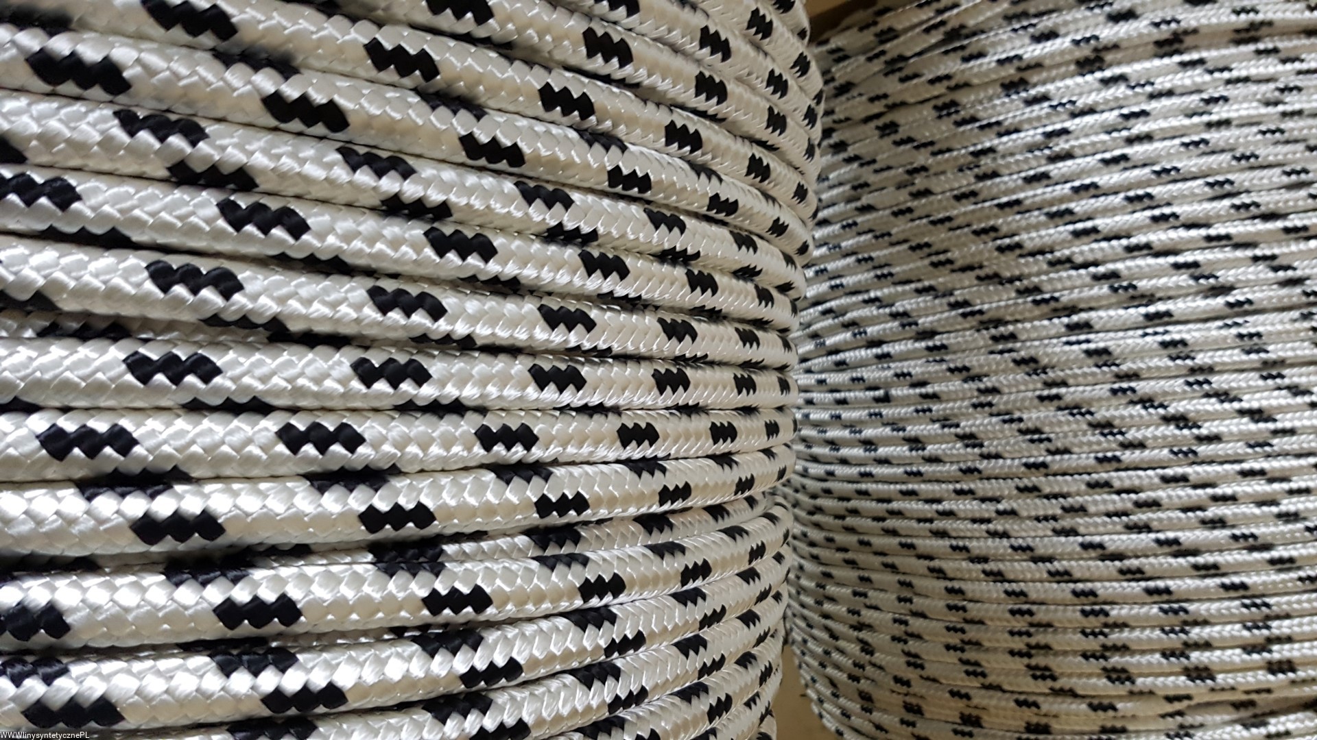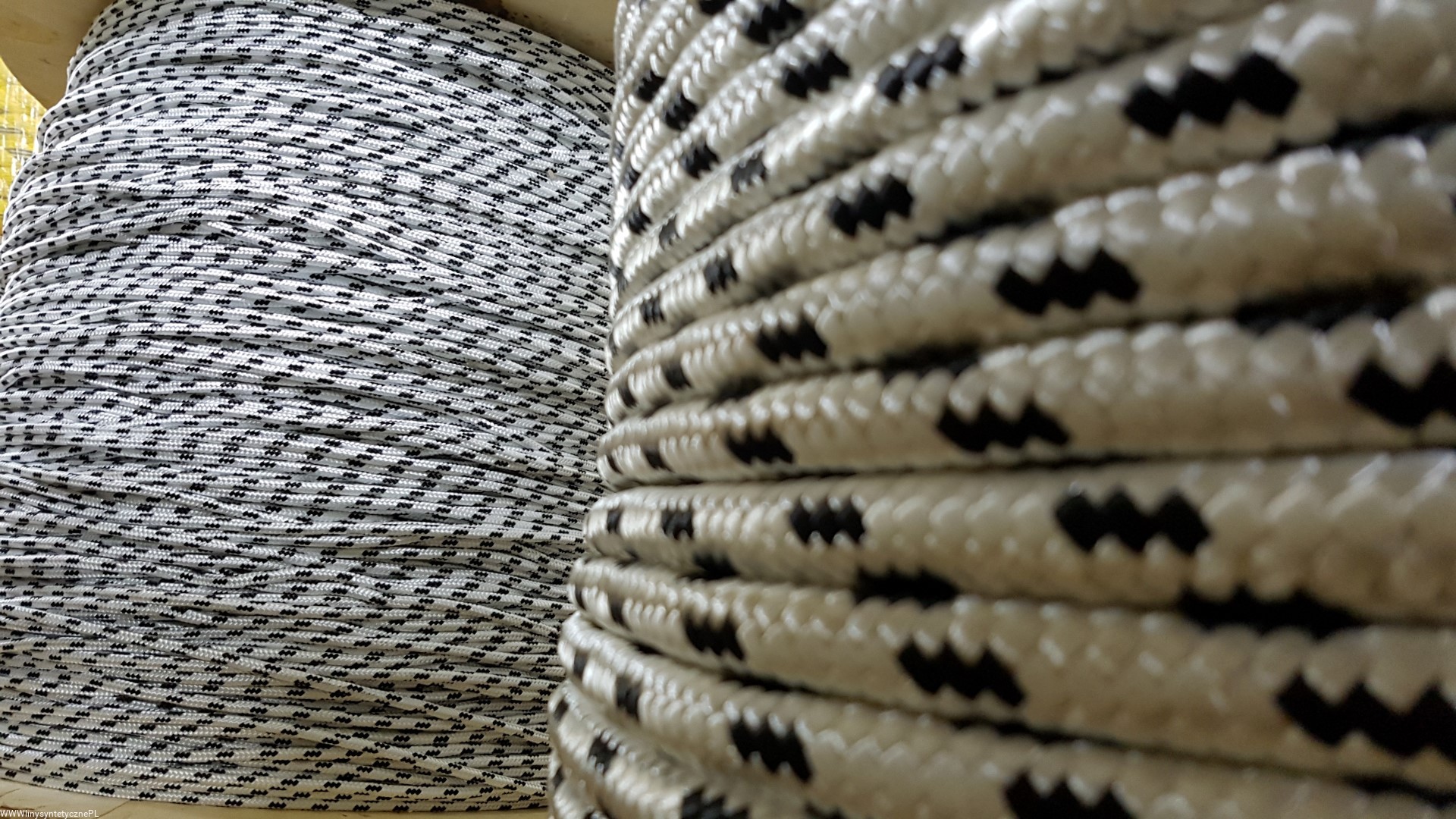 Biała Pleciona Lina Nylonowa z czarnym akcentem sprzedawana na metry.