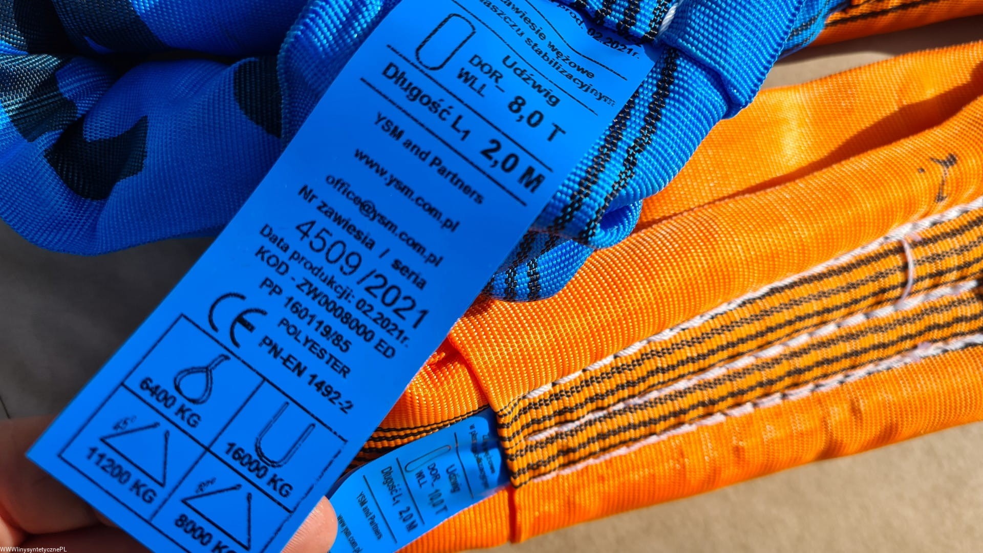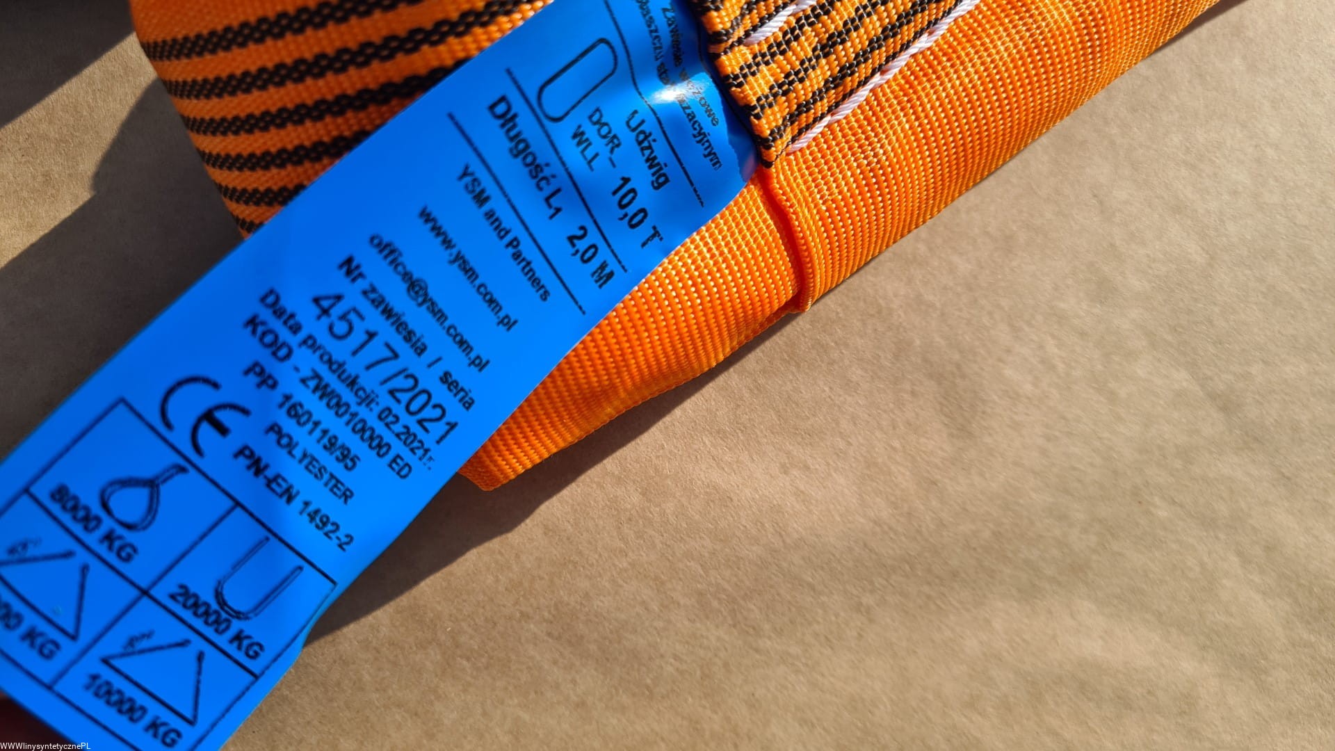 Wytrzymałość każdego zawiesia potwierdzona jest na metce znamionowej wraz z informacją o obciążeniu roboczym oraz współczynniku bezpieczeństwa.
